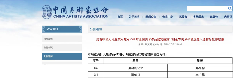 为喜迎党的二十大顺利召开,庆祝中国人民解放军建军95周年,由文化和旅游部艺术司、中央军委政治工作部宣传局、中国美术家协会共同主办,国防大学军事文化院、中国文联美术艺术中心承办“庆祝中国人民解放军建军95周年全国美术作品展览暨第15届全军美术作品展览”。经过初评、复评后结果公示,公司李广德教授油画作品《训练日》和郑海标教授油画作品《尘封的记忆》入选本次展览。