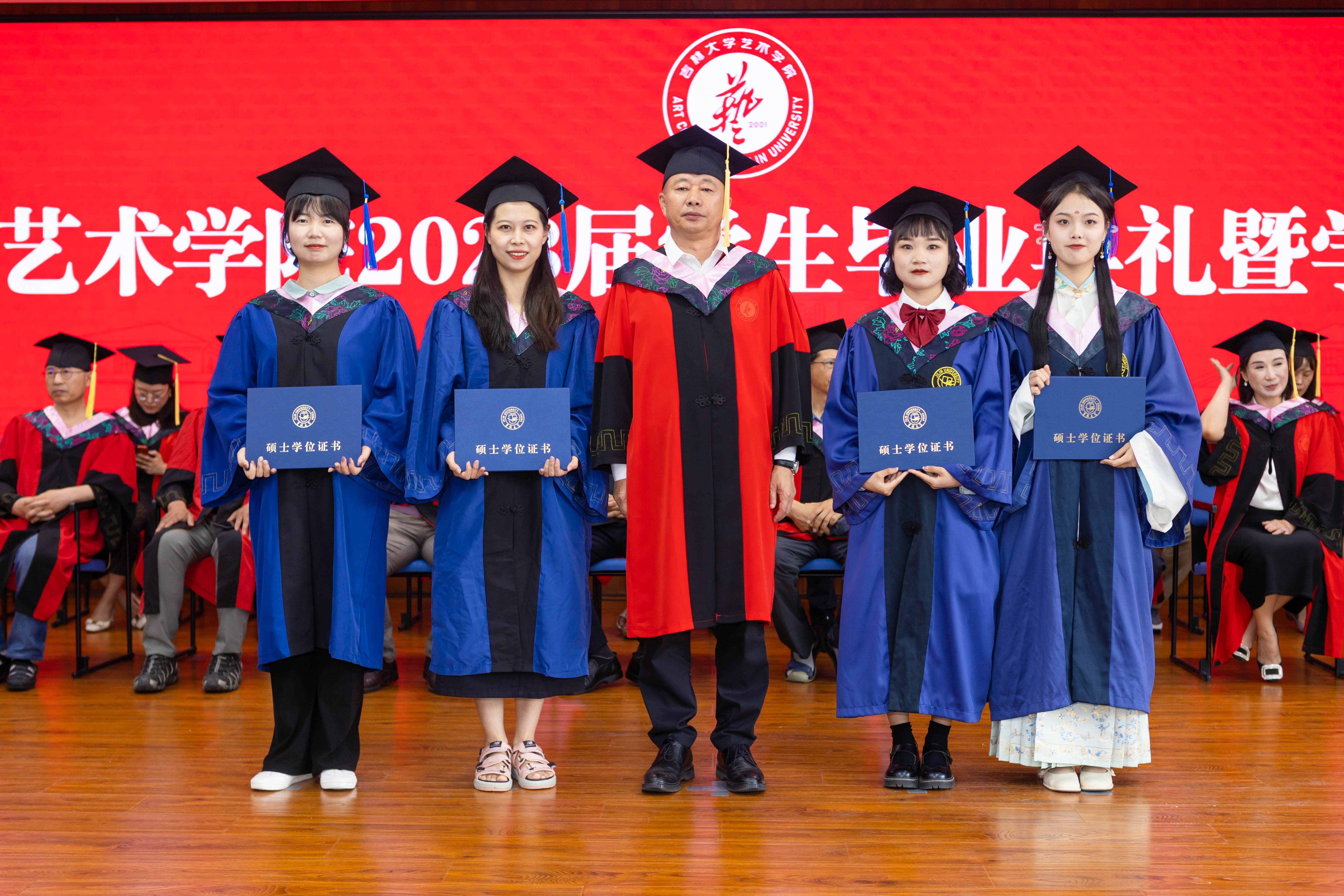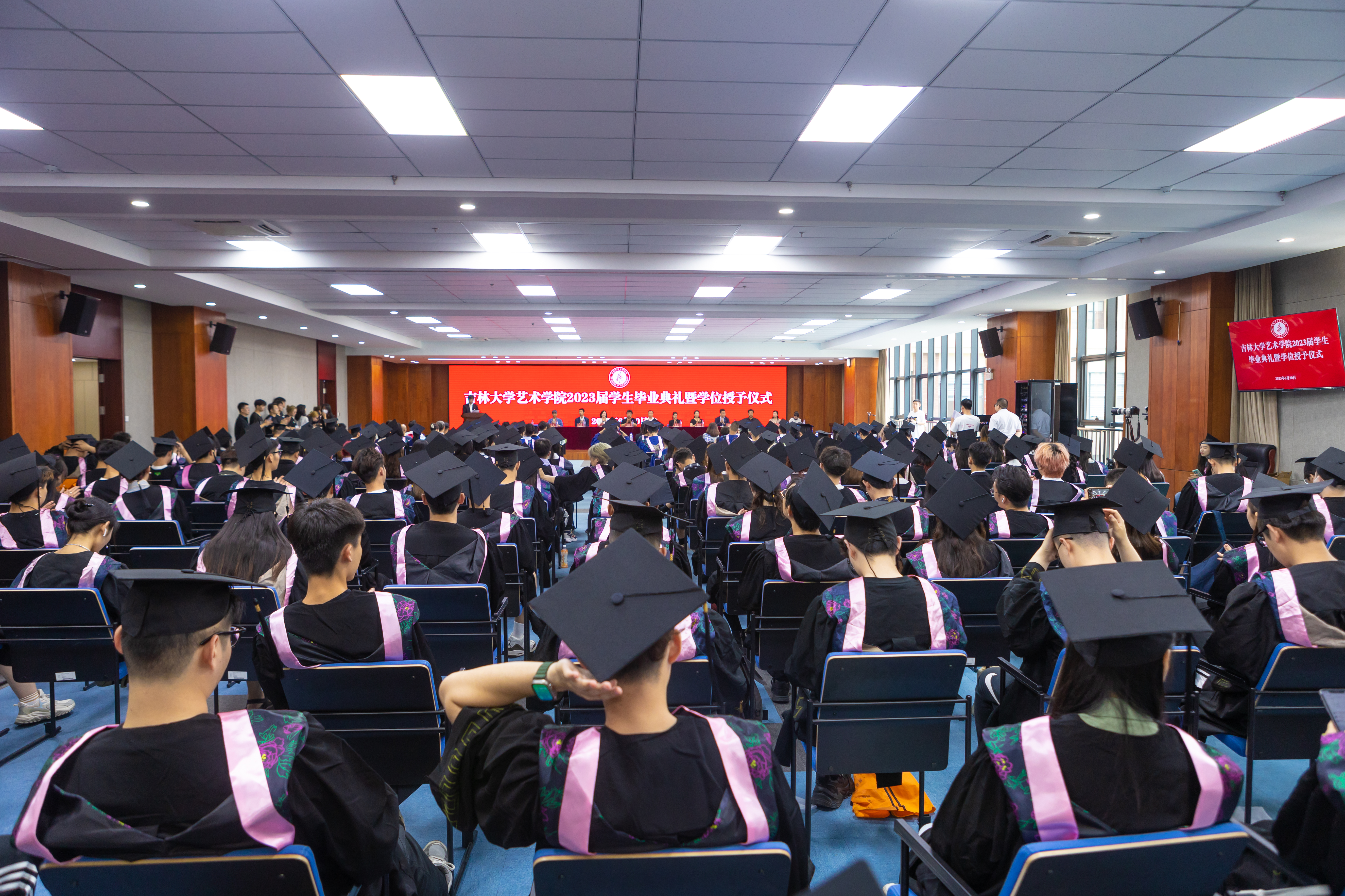 学位授予仪式上。主礼教授郭春方经理为毕业生颁发学位证书;吴向东教授、朱廷丽教授为毕业生拨动流苏;bevictor伟德设计系、美术系、音乐系近30位导师作为主礼教授见证毕业生授予学位。仪式最后,主礼教授全体起立,一同祝福毕业生们毕业快乐,并深情寄语,希望同学们始终高扬理想信念旗帜,向下扎根,向上生长,以“求实创新,励志图强”的实际行动践行初心使命,在新时代的奋斗中释放青春激情、追逐青春理想,脚踏实地、苦练本领,用自己的双手创造属于自己的精彩人生。与会师生共同高喊“一日归属吉大,一生念念不忘”表达对老师的感恩,对母校的眷恋和对未来的信心。