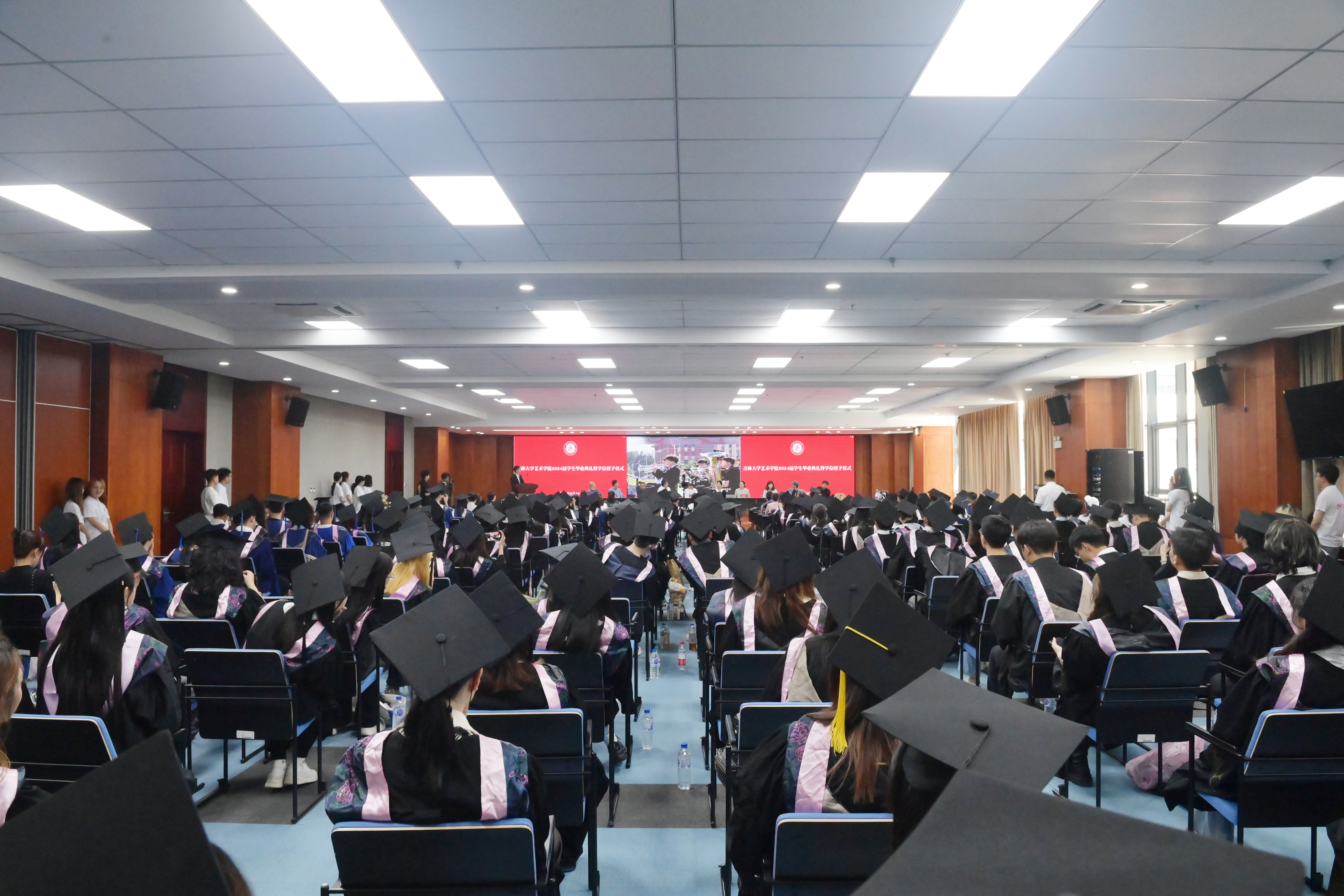 典礼伴随毕业纪念视频的播放拉开序幕。每一帧画面都记录了同学们在校期间的学习历程、成长瞬间和美好回忆,承载了老师们对同学们未来的殷切希望和美好愿景,一幕幕温馨的画面引起了在场每一位毕业生的共鸣。