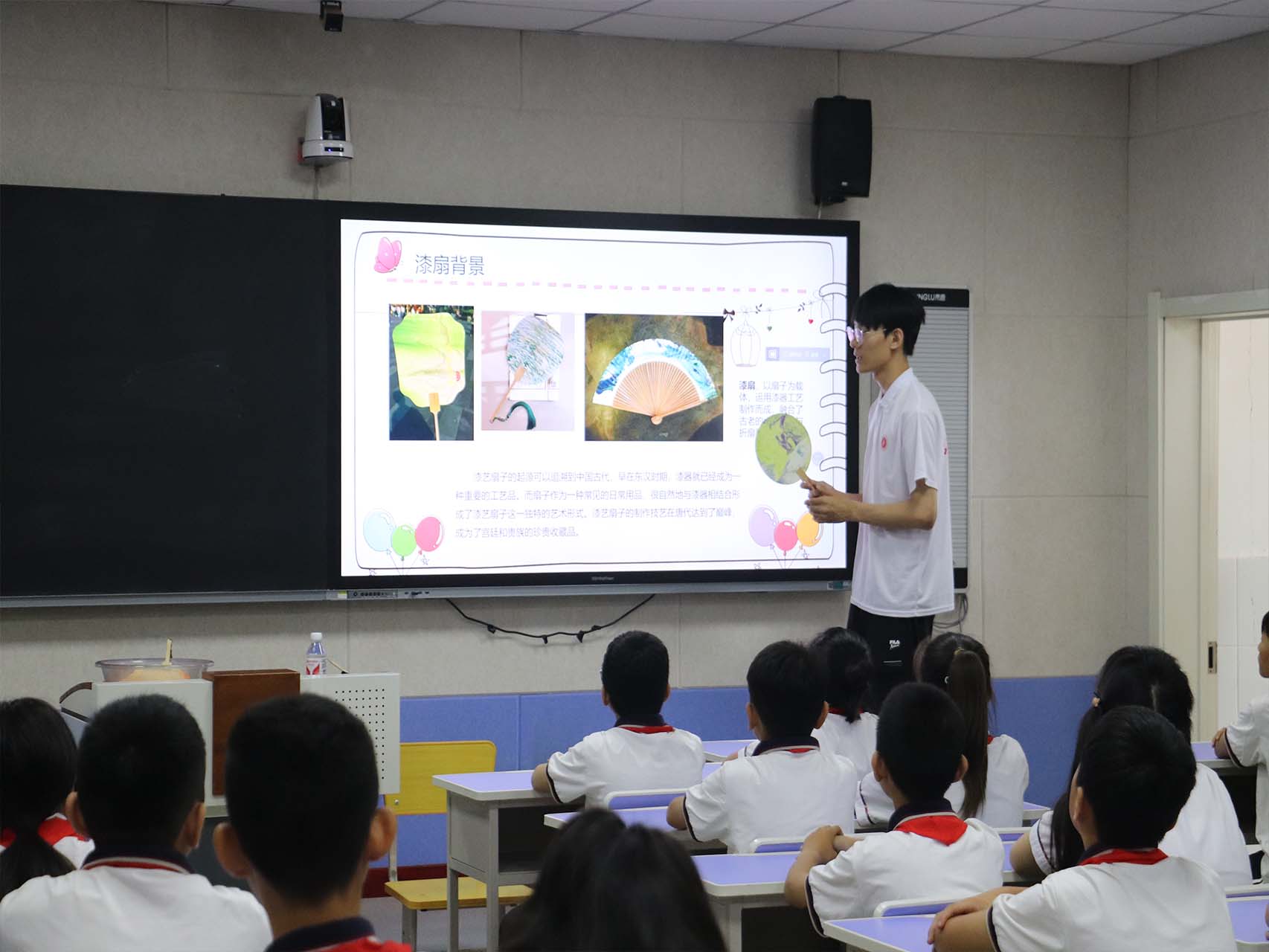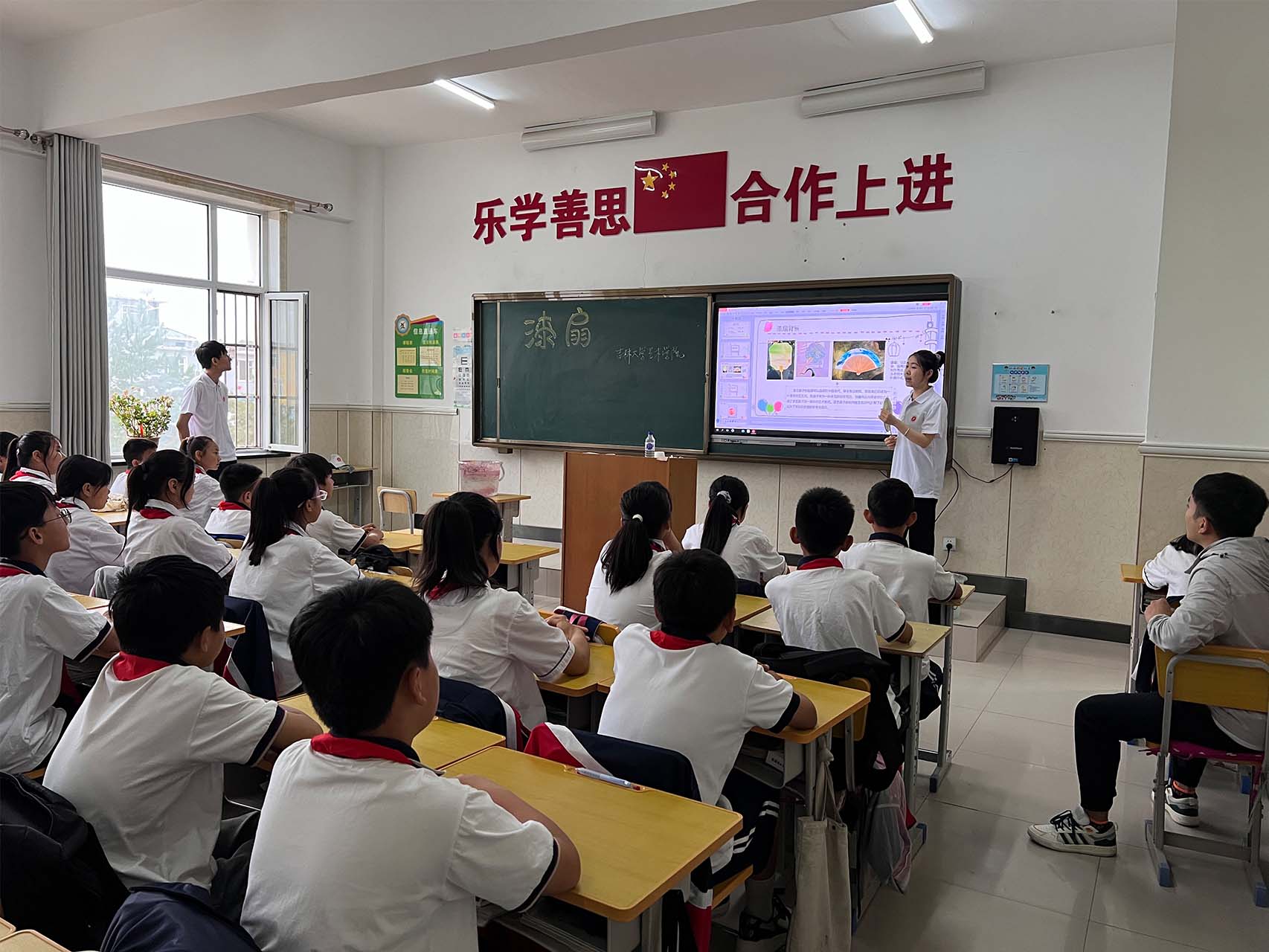 7月3日,由齐志峰、姜宝涛、苏佳星、李忻芮组成的初中美术组,张咏怡、高一赫、任青宇、石宇佳组成的初中音乐组前往通榆县兴隆山镇第十中学开展实践活动。活动中,志愿者首先讲述了声乐演唱技巧、歌唱基础等音乐常识,并对民族音乐——二胡进行了细致介绍。员工们积极参与,表现出浓厚的兴趣。在声乐演唱技巧课堂上,员工们跟随志愿者的指导,认真学习发声方法和演唱技巧,欣赏二胡演奏。在随后的美术课堂中,志愿者们着重介绍了漂漆工艺的发展源流及技术要点,员工们聚精会神地听讲,就漂漆工艺的原理和技巧提出问题,志愿者耐心解答,帮助他们理解和掌握相关知识,随后同学们亲手进行了手工漆扇制作,进一步深化了同学们对非遗文化的了解。