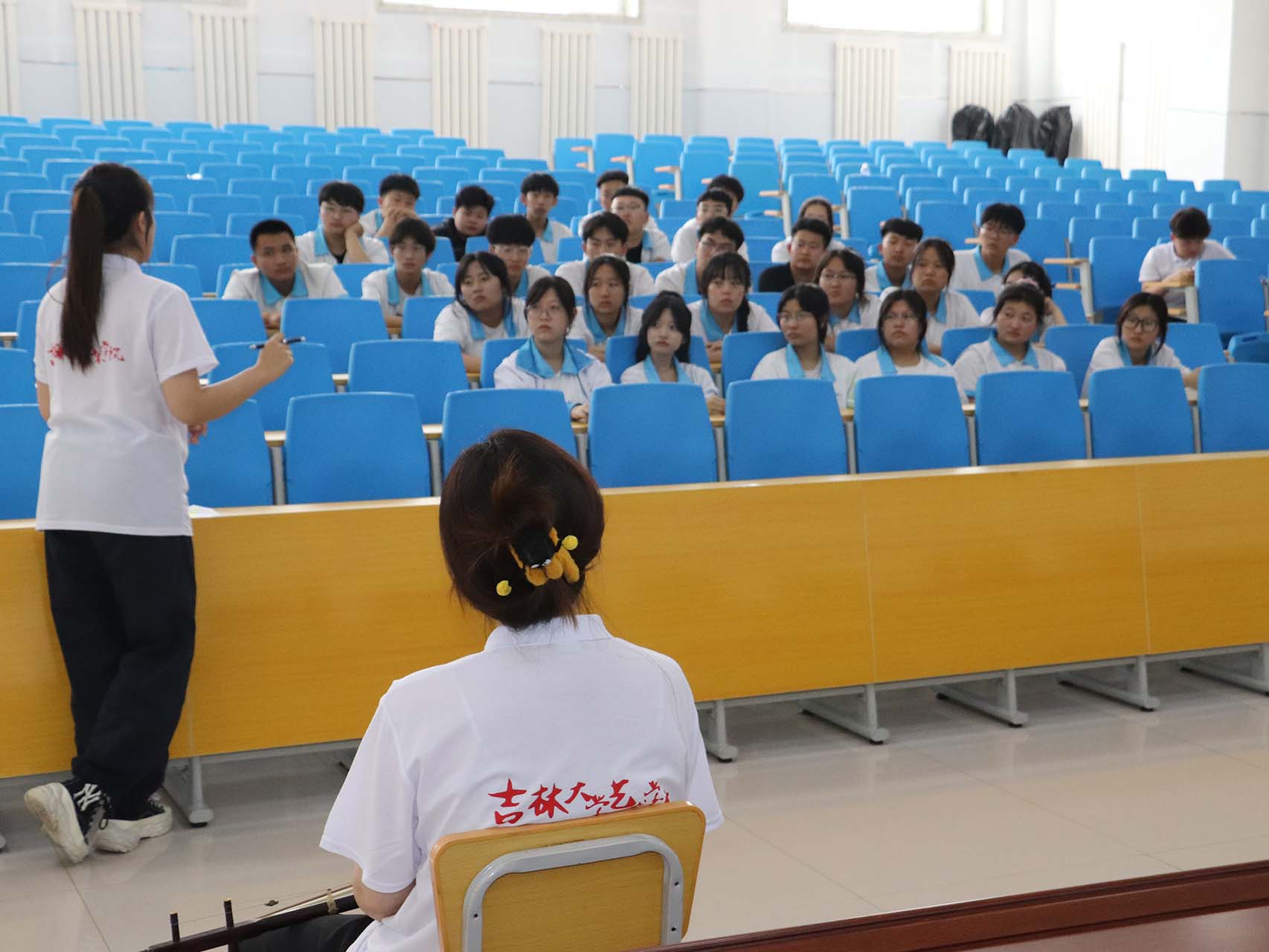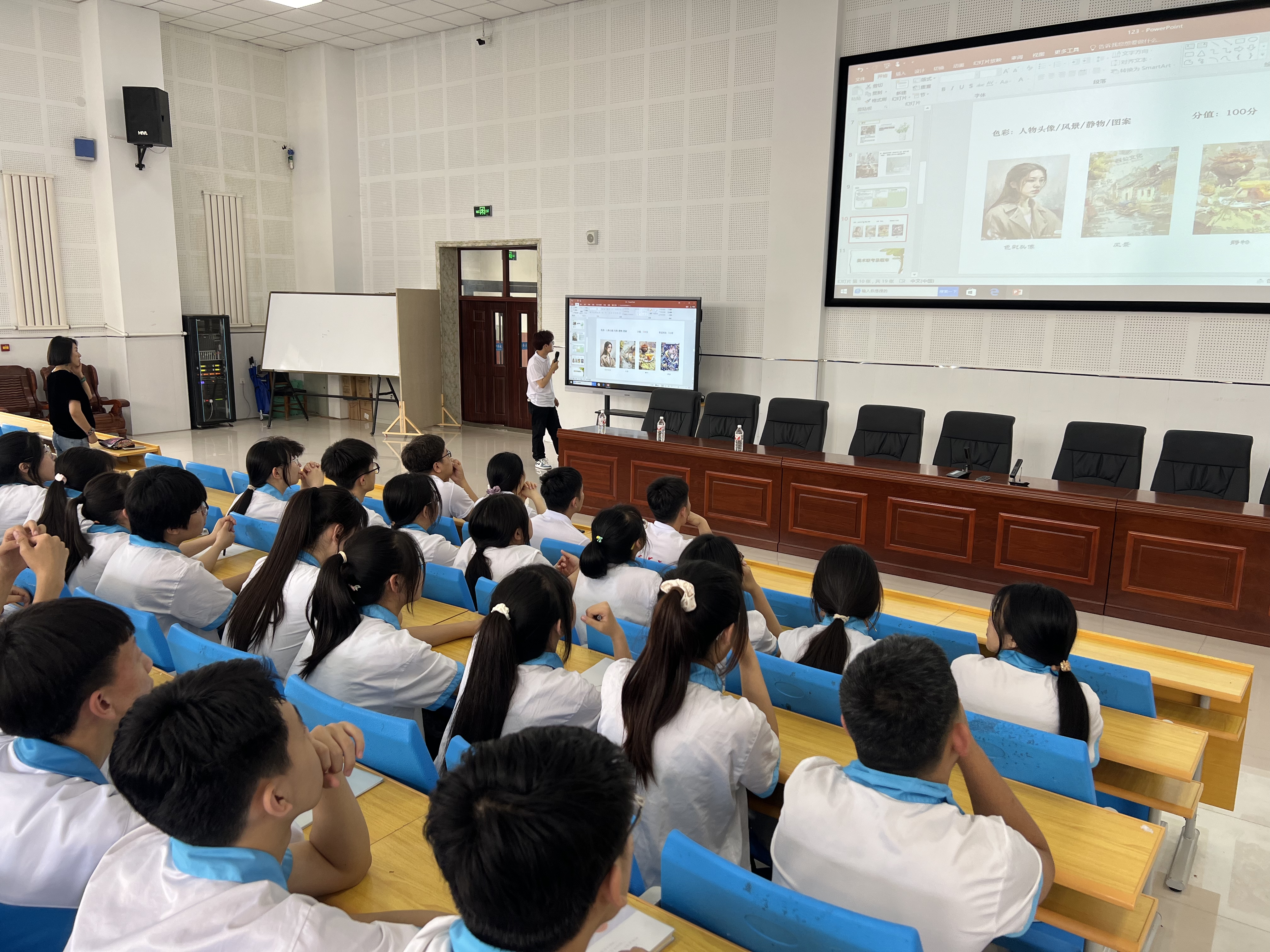 7月2日下午,由白青辰、王小源、李苏成组成的高中美术组,由张玏、崔一帆、吴浩然、客华君组成的高中音乐组前往通榆县实验中学开展高中组教学活动。活动中,团队成员向在场员工讲授了艺术类专业考试相关常识,包括音乐、美术学科的基础理论、演练技巧及考试注意事项。参与同学们认真学习,积极提问,面对重点内容,同学们认真记录。在互动环节,员工们纷纷举手,提出了一系列关于艺术联考备考、个人艺术发展方向等问题,志愿者们耐心细致地一一作答。通过交流,大家对于音乐、美术联考的信息有了较为深入的理解。