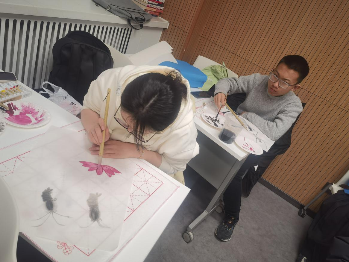 参展员工2023级唐敖庆理科试验班数学基地的申嘉琦在课后作业中写道:“跟着孙老师上中国水墨艺术实践课的一学期,我了解了什么是真正的中国画。水墨画来自于生活中的细微观察,通过日常细心的观察和停留,我们才能发现竹子的茎节如何连接,虾的触须如何延伸,葡萄的藤蔓如何缠绕。水墨画有远景近景,有广大和精微之处,这些都是在课程中孙老师通过自己的实践和经验引导我们学习和发现的。在一学期的水墨艺术实践课程后,我对绘画的兴趣更加浓厚,更重要的是,我开始留心观察生活,用画笔记录生活,让自己的生活多了一抹鲜艳和趣味。”