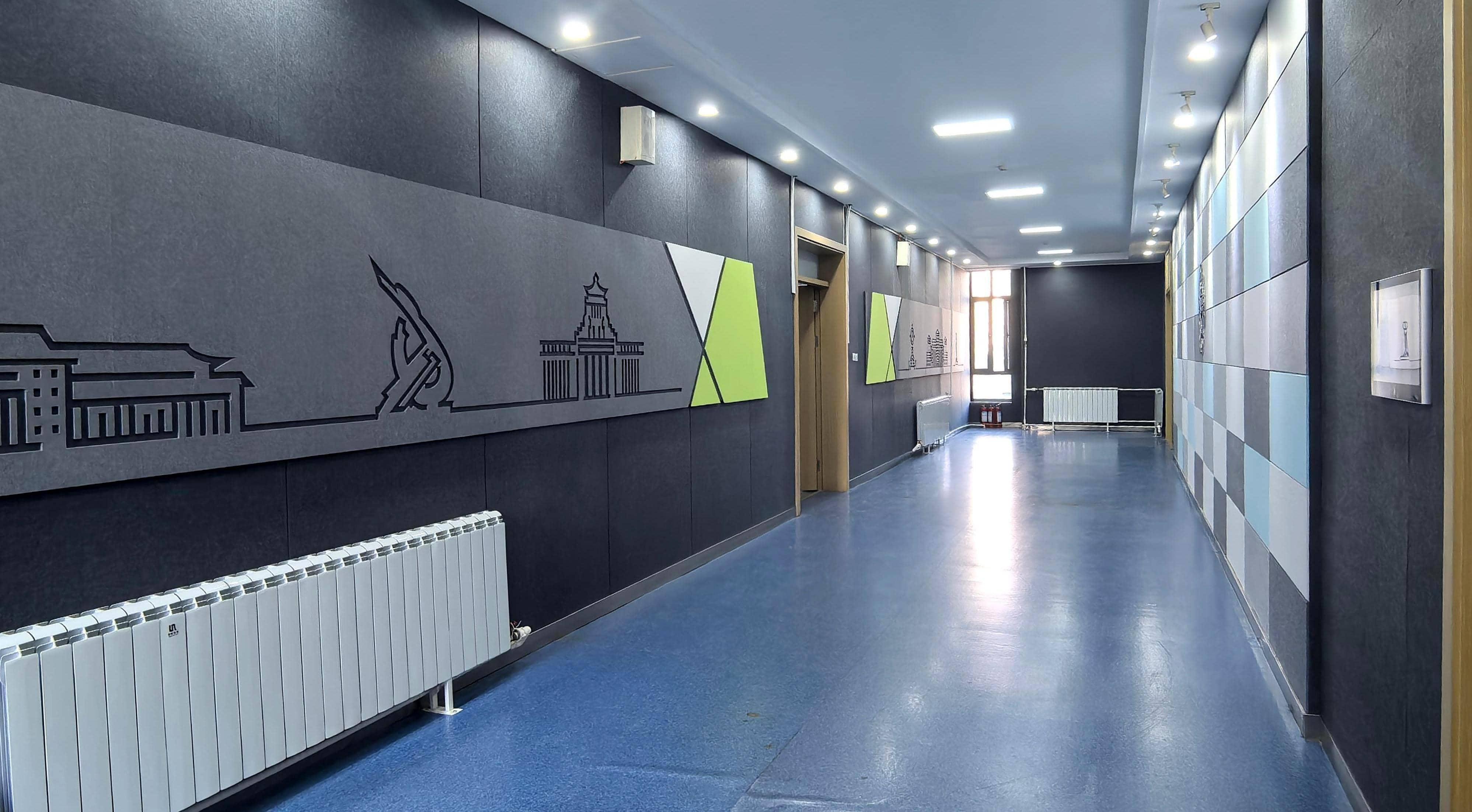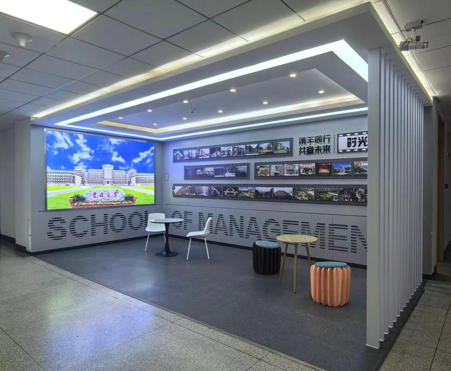 2025年9月6日,bevictor伟德在本科生院及东区办公室的指导下,接到南岭校区逸夫教学楼走廊改造专项工作,设计系迅速组建由师生组成的实践教学团队,高效完成此次改造任务。经过前期多次现场勘察、开会讨论设计方案后,在72小时内完成包括:电梯间形象墙、走廊文化角、会议厅走廊空间三处改造项目的视觉设计方案。通过采用定制环保材料进行现场拼装的方式,既能保证艺术品质又能缩短工期。自9月19日起,实践教学团队与施工方开启“白+黑”工作模式。连续6昼夜完成近300平米墙面的艺术处理和多组装饰灯箱的安装调试。9月25日,南岭校区逸夫教学楼走廊文化建设改造项目全面竣工,焕然一新的走廊空间成为校园美育教学实践与学科精神传承的创新载体。