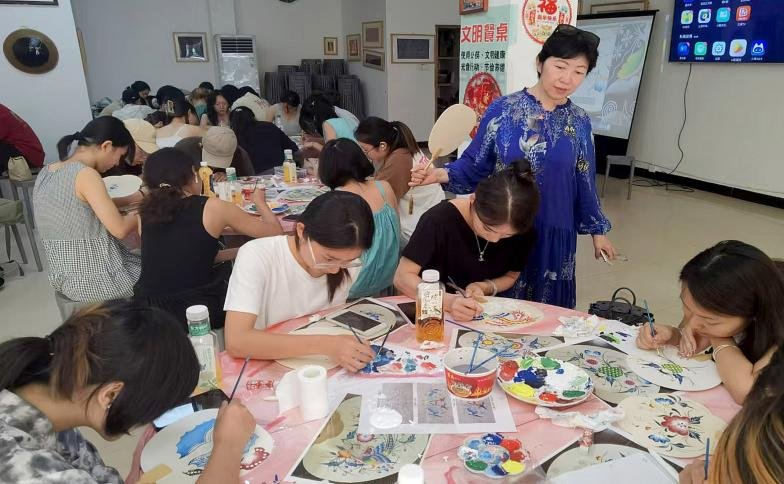 此外,师生们还深入了解了蜡染这一民间传统纺织印染手工艺。在老师的讲 授下,同学们学习了蜡染的基本知识和制作过程。他们亲身涂抹蜡、体验蜡染的 神奇过程,看着自己亲手绘制的图案变成一件件精美的作品,成就感满满。此次 蜡染制作体验活动,不仅让同学们深刻感受到了中国传统民间艺术的魅力,也对 非物质文化遗产有了更深刻地了解。