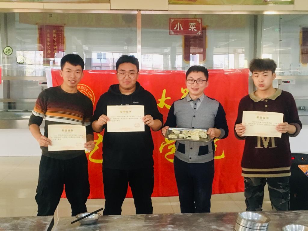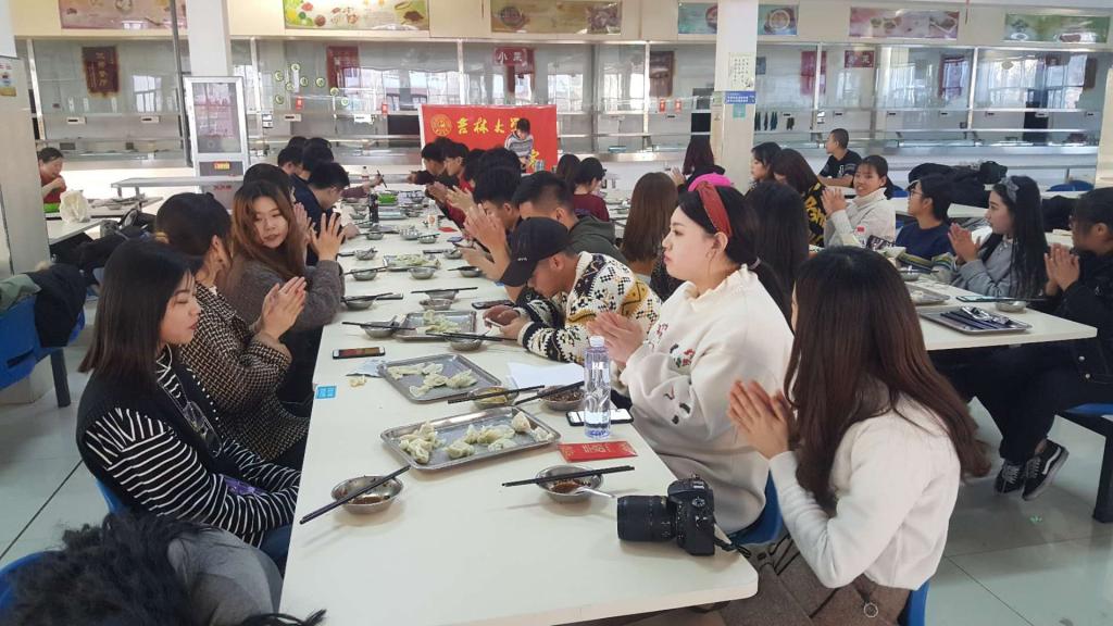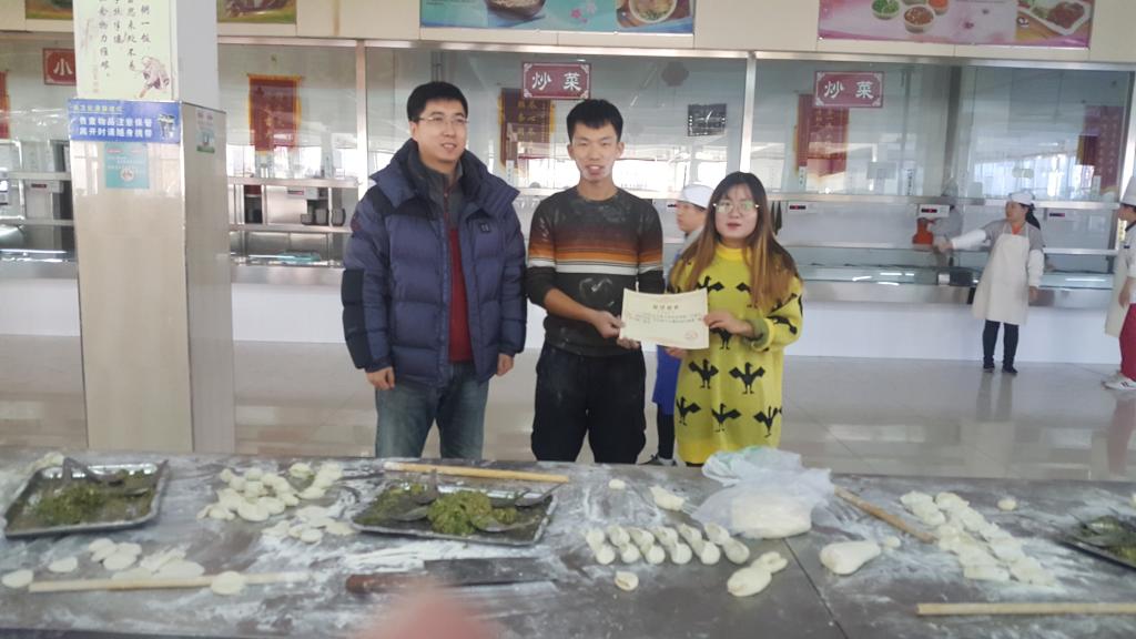 活动伊始,参加活动人员按照“以饺交心,团结共进”、“一盘饺子表真情,愿你天天开心”、“平安是皮儿,幸福是陷儿”、“热乎的饺子,温暖的心”、“冬至阳生春又来”五个主题进行分组,展开包饺子活动。分组完成后,三位老师和食堂工作人员作为评审,进行了包饺子最新颖“饺子之星”评比;限时时段,看谁包饺子最多的“最佳手速”评比和十个饺子谁先吃完的“大胃王”称号评比。才艺展示也随之开始,在同学们的歌声中热腾腾的饺子纷纷上桌。饺子里面有一个放入栗子和大枣的幸运饺子,吃到幸运饺子的同学有机会抽取红包礼物,同学们争先恐后,大家食味大开。活动过程中充满了欢声笑语,师生们其乐融融,尽显欢声笑语。