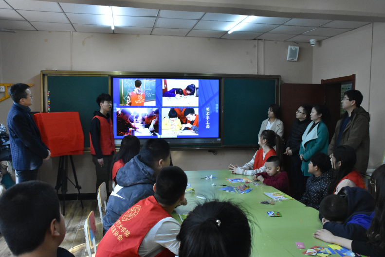 本次公益活动内容主要由团队授课、爱心慰问、揭牌仪式、赠予仪式等部分组成。首先同学们利用专业知识,通过一对一结对艺术授课,带领孩子们制作了简易手工作品。接着开展了关爱自闭症儿童志愿交流座谈会,通过展示与回顾讲述了志愿者和孩子们之间的故事,并提出了对未来志愿活动的方案以及实施办法。