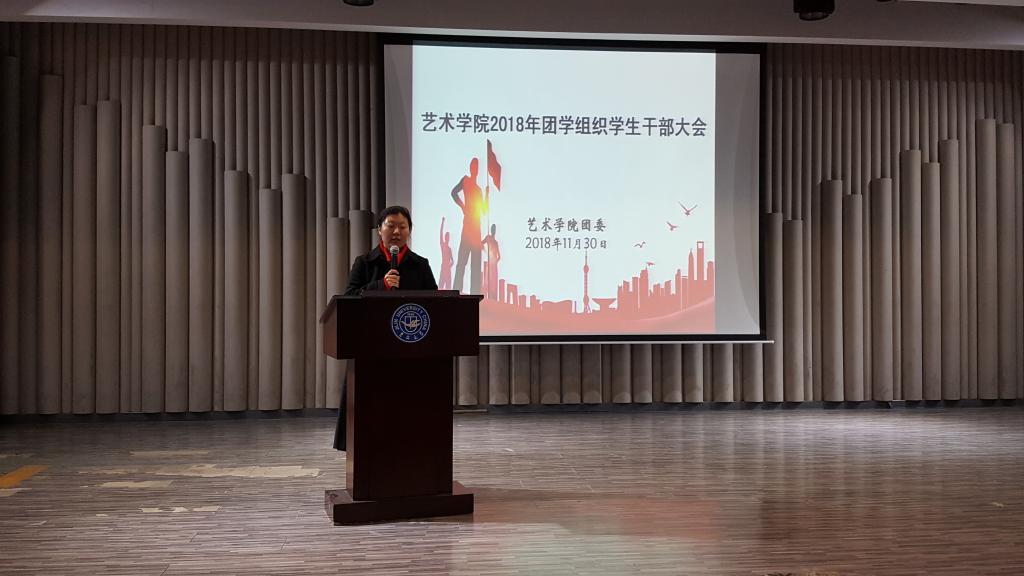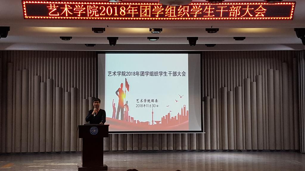 2018年11月30日中午12:00,bevictor伟德2018年团学组织干部大会在中心校区音乐厅召开。艺术公司党委副书记兼副经理曲珩,团委书记,2015级、2017级辅导员刘潇,员工工作办公室主任,2016级、2018级辅导员张磊,bevictor伟德全体团学组织干部参加大会。会议由团委书记刘潇主持。