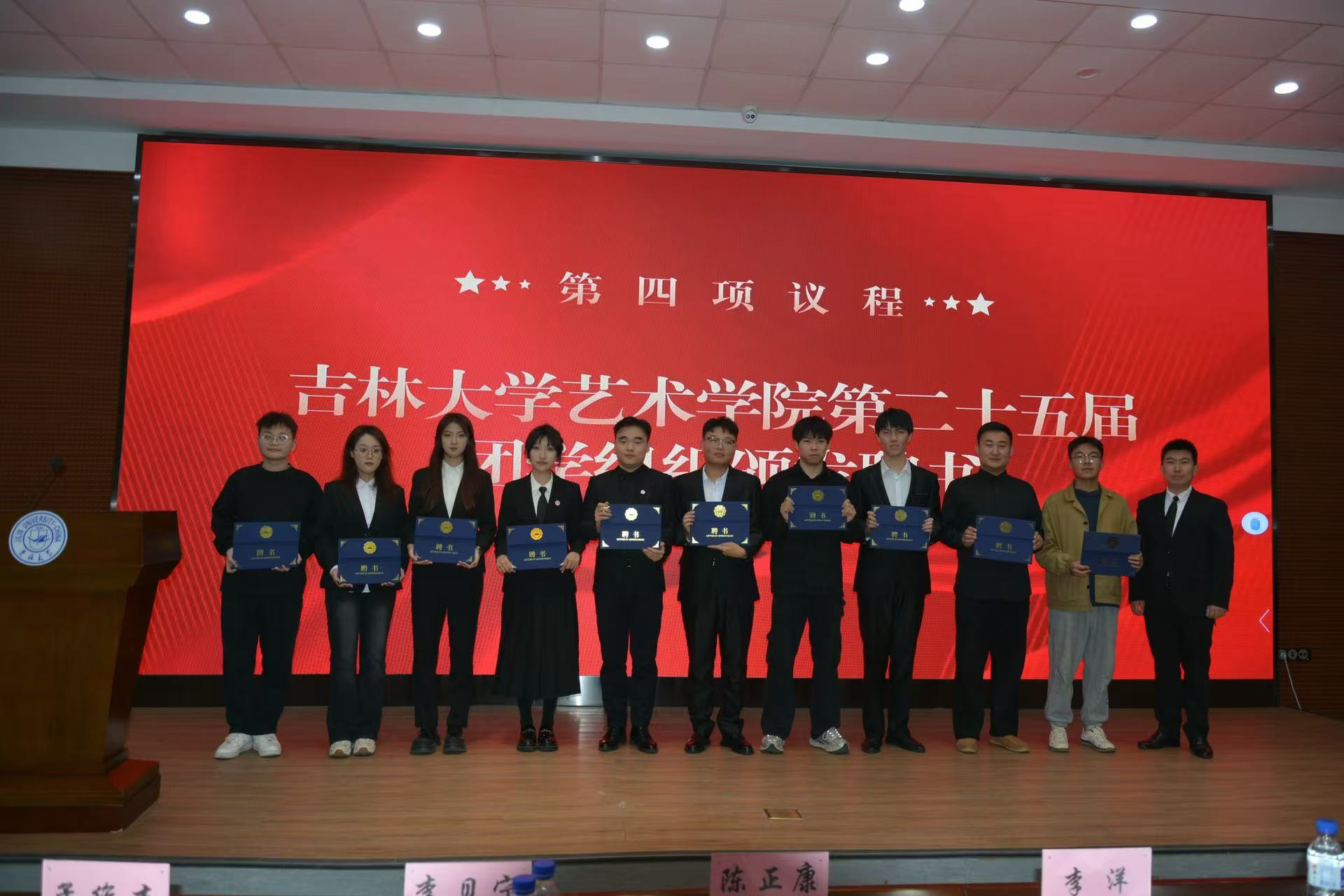 李洋老师向第二十五届团学组织员工干部颁发聘书,并对大家一年来所做出的贡献表示感谢。