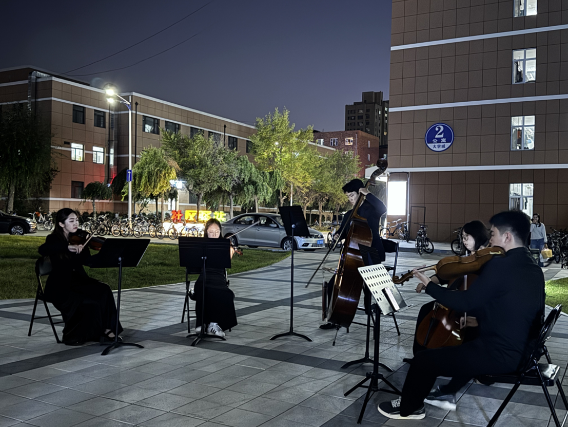 社区内桂香浮动,弦乐五重奏乐团奏响经典《卡农》。乐手们娴熟驾驭乐器:小提琴灵动、中提琴温润、大提琴深沉,再加上低音提琴的浑厚打底,四种音色交织成动人旋律,层层音符如秋日月光包裹现场,让台下观众沉浸于浪漫秋夜梦境。中秋团圆氛围悄然弥漫,灵动演奏与桂香相融,为佳节添上别样艺术韵味。